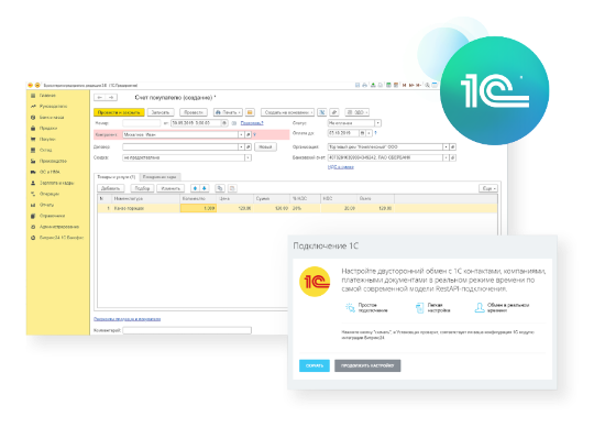 с 1С в режиме реального времени.
